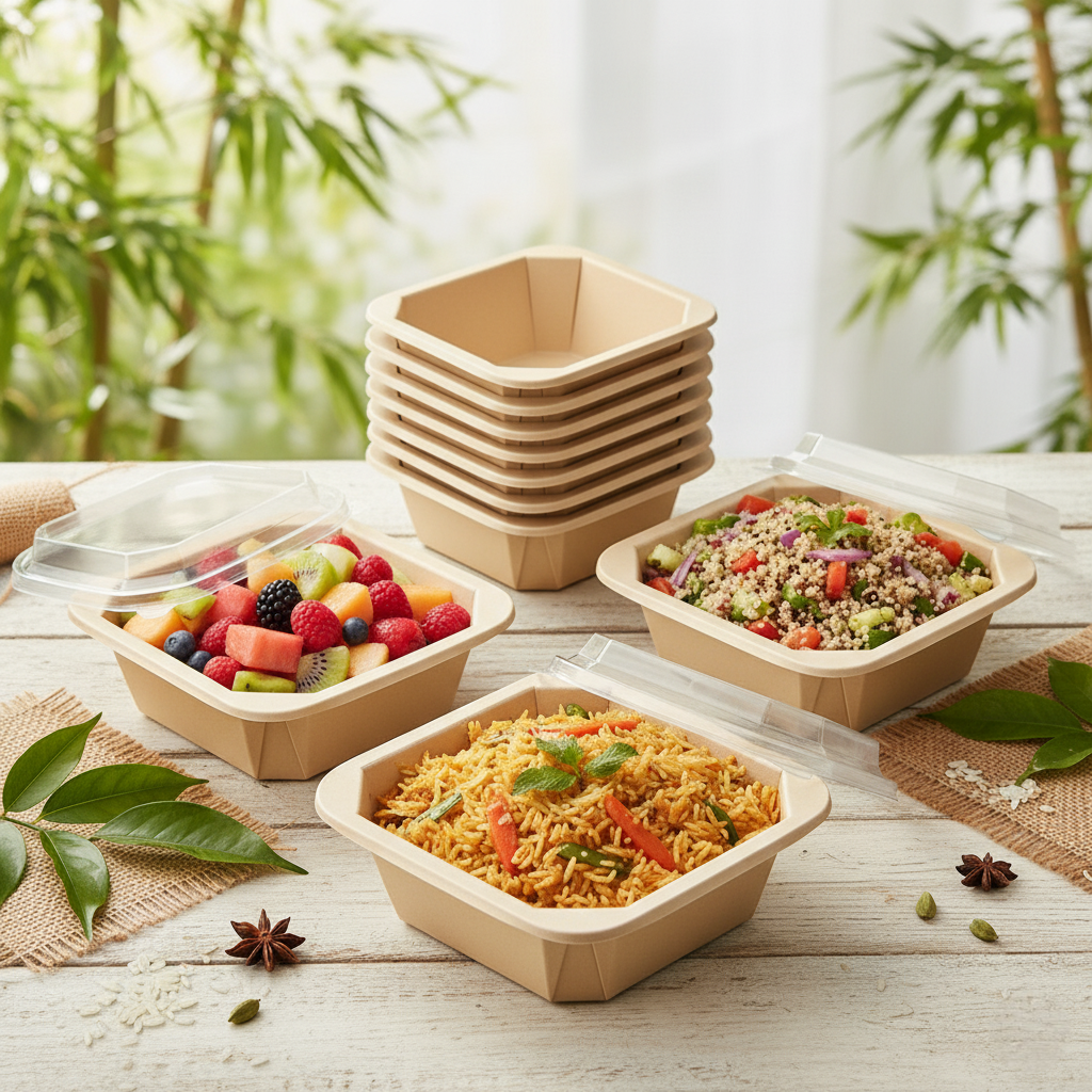 Crafted from durable kraft paper with a leak-proof lining, our disposable bowls with lids are perfect for everything from curries to salads. Microwave-safe, refrigerator-friendly, and eco-conscious, they keep food fresh, secure, and ready to serve at home, in restaurants, or on the go.